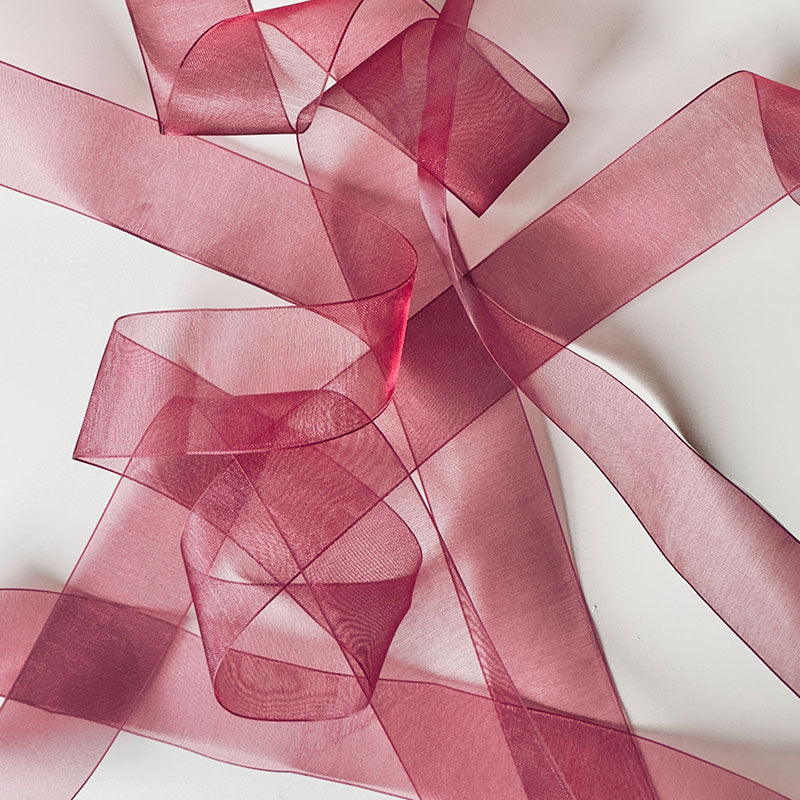Ribbon (8 ft.): 1 1/2" Sheer organza ribbon in a deep burgundy hue